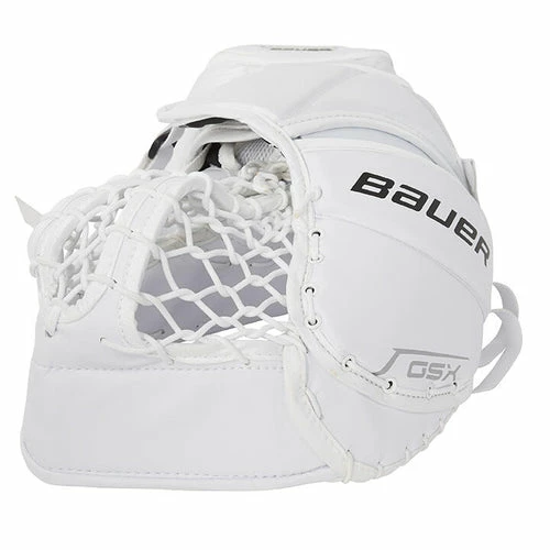 The Bauer GSX Catch Glove is for the rec goalie. It’s simply the best rec level catcher on the market. We’ve used the catcher closure tech and flex from Vapor AND the max depth pocket and coverage of Supreme. There’s a larger catching surface for junior and youth with an enhanced closure, which makes catching pucks much easier.
